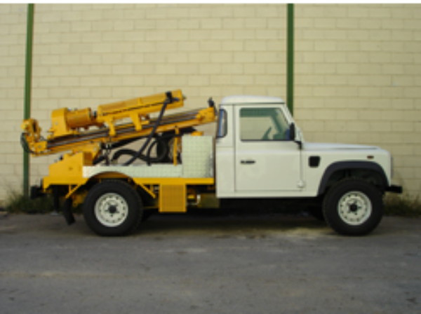- Puede perforar con hélice de 90 a 130 mm. De diámetro a una profundidad de 20-30 metros. También puede hacer penetrómetros, trabajar con martillo de fondo de hasta 180 mm. de diámetro y accionado de forma neumática a 20-50 metros de profundidad. Puede hacer perforaciones de testigo| continuo con baterías dobles y sencillas utilizando coronas de wídia y diamante hasta profundidades de 50 m.